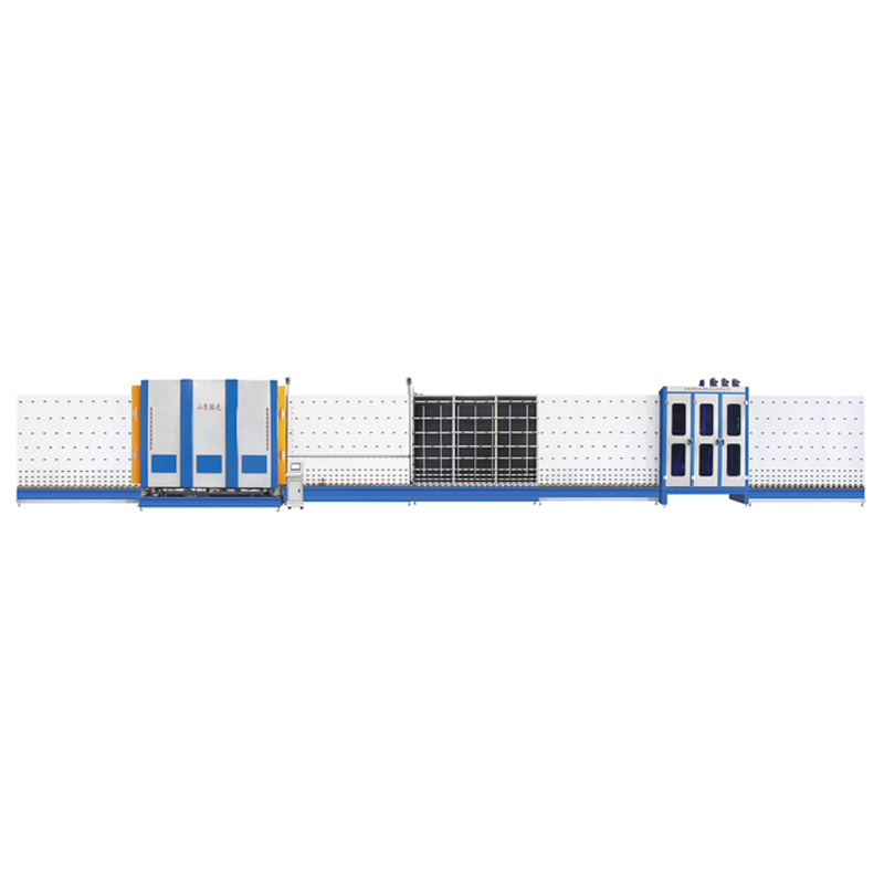 该生产线采用了先进的中空玻璃制造技术和工艺,主要由上片、清洗干燥、灯检、铝框定位、自动合片、板压、翻转段组成。可加工等片中空玻璃,生产效率高。